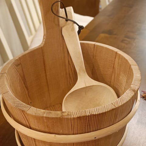 Teräksinen löylykiulu puukahvalla