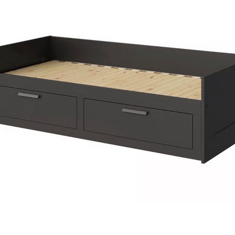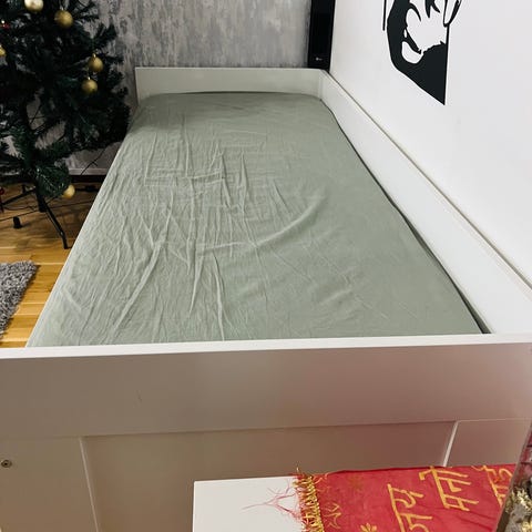 Löytyy muutamia kolhuja maalipinnassa, mutta hyvässä kunnossa ja täysin toimiva suoraan käyttöön. Helppo levittää isommaksi sängyksi -pyörät alla.