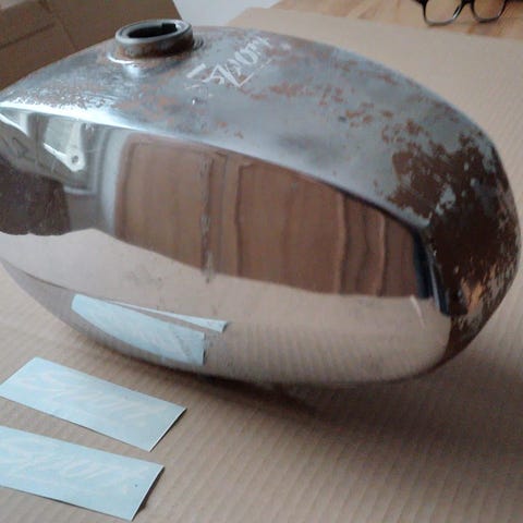 Tankintarra Jupiter ja muut Öglaendin sport mallin 60-luvun mopoihin jossa tankin päällä "sport" tarra. Sisältää rahdin kotiin