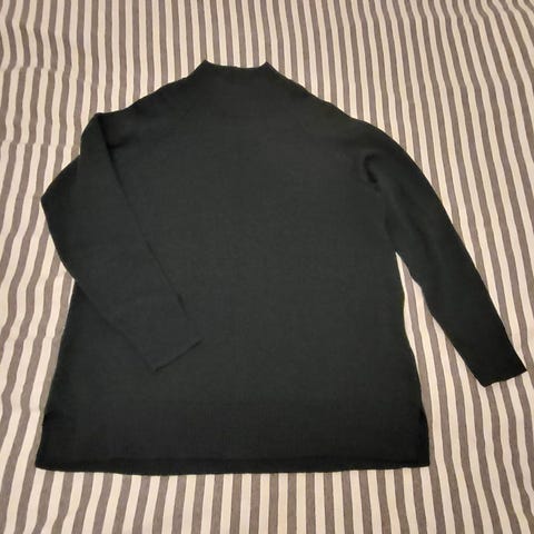 Mitat venyttämättä kainalosta kainaloon n. 47cm, kokonaispituus kauluksesta helmaan n. 70cm, hiha kainalosta n. 51cm. Paksu ja lämmin!