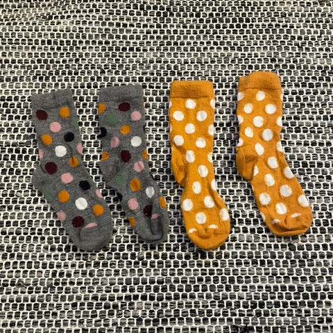 Vähän nyppyä, mutta muuten hyväkuntoiset. Vastaava tuote täällä: https://www.polarnopyret.fi/lastenvaatteet/villa-kerrastot/villasukat/sukat-merinovillaa-harmaameleerattu-60602514-186
