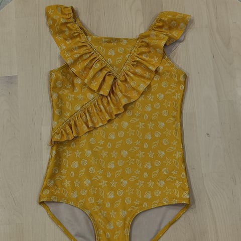 Koko 122/128. Enemmän 122, ei mennyt enää meidän 128cm pitkälle. Vaaleankeltainen/vaaleanpunainen kukkakuosi, nätti uikkari. Säädettävät olkaimet. Nouto Lämsänjärveltä tai Toridiili. Kissatalous.