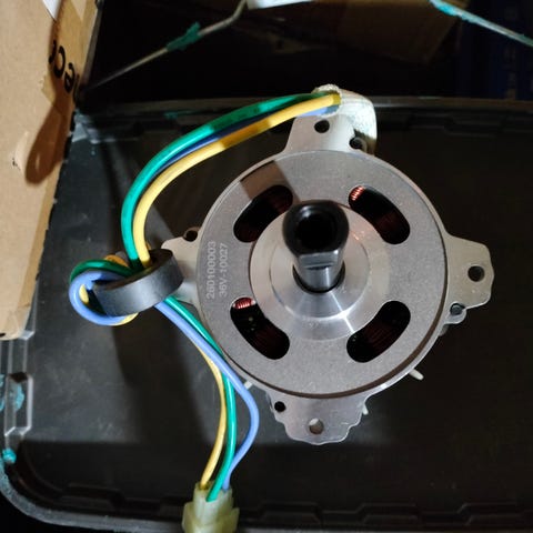 Sähkömoottori vaihteistolla ja hammasrattaalla.