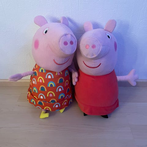 🐽 Pipsa Possun perhe eli neljä pehmolelua. Nämä ovat leikkimättömiä, eli kunnoltaan uutta vastaavia. Näiden mukana tuli pahvinen auto, se ei ole enää tallessa. Tässä linkki samaan tuotteeseen, mistä löytyy enemmän tietoa, esim mitat: https://www.verkkokauppa.com/fi/product/644839/Pipsa-Possu-pehmoleluperhe-ja-auto