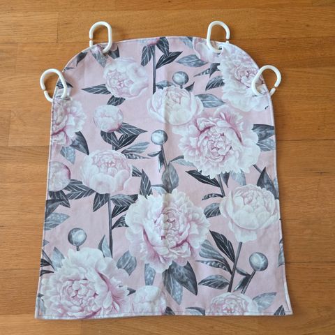 Aivan ihana marimekko unikko kankaasta tehty vaunuverho. Keskellä menee kaksi tarraa joiden avulla vehon pystyy rullaamaan moneen eri asentoon. Alhaalla myös narut joilla voi solmia verhon.