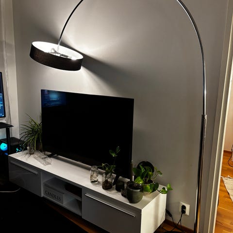 Myydään jalkalamppu korkeus 170 cm varjostimen läpimitta 50 cm.