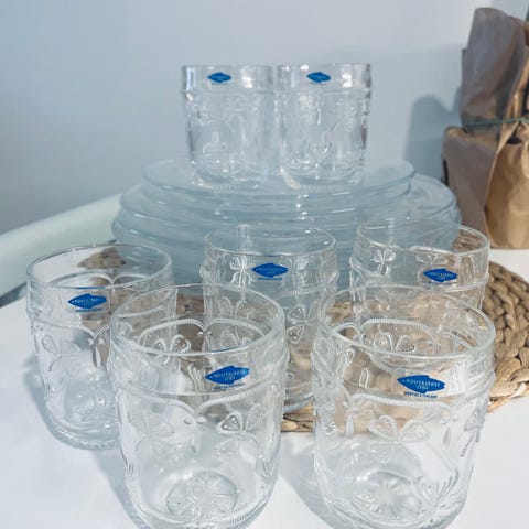 Nuutajärven Pioni lasilautaset, halkaisija 17cm.