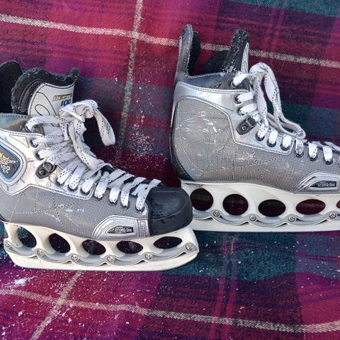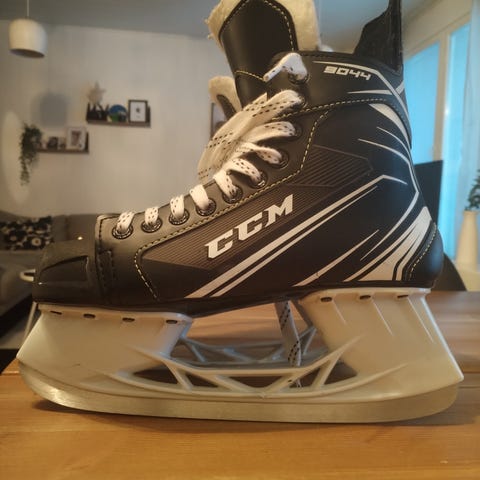 Myydään CCM jääkiekkoluistimet 9044, mustavalkoiset, koko 41, sisäpohjallisen pituus 26 cm. Luistinten kunto on hyvä eli sisävuori ja ulkokuori ovat ehyet, toki pinnalla käytössä tullutta naarmua. Teriä on huollettu käytön aikana. Mieluummin nouto.