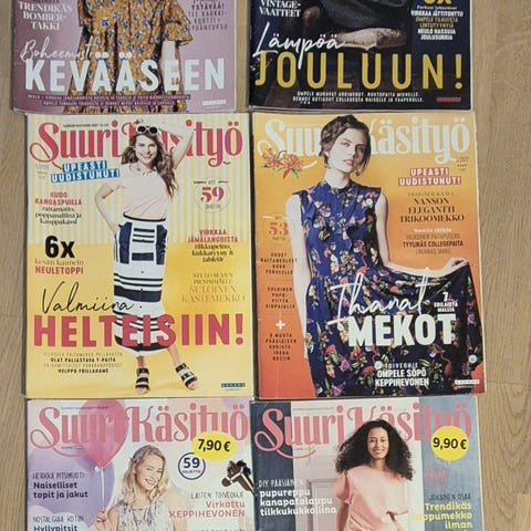 Seitsemän Suuri Käsityö -lehteä. Kaikissa kaava-arkit tallessa, vain yhdessä ne on irroitettu lehdestä. Osassa takakannesta leikattu osoitetiedot pois. Nouto tai postitus kuluja vastaan.
