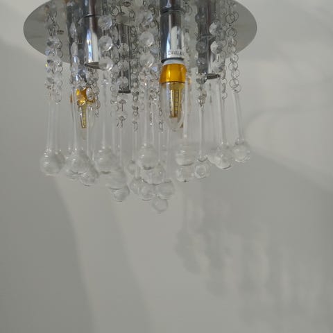 Kattovalaisin, jossa valkoinen lasikupu. Valaisin on pyöreä ja sopii yleisvalaisuun. Sisältää kaksi lampunkantaa. Metallirunkoinen valaisin, jonka halkaisija on 50cm.