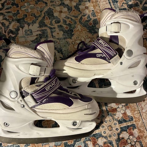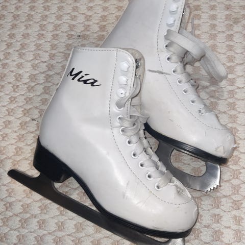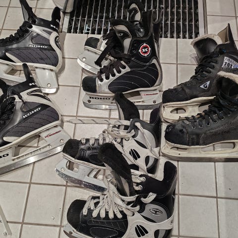 Annetaan Angel merkkiset luistimet. Toisesta puuttuu nauhat ja terät vois olla terävämmätkin, mutta kyllä ne menee varmasti nuinkin. Nauhat paikalleen ja menoksi.