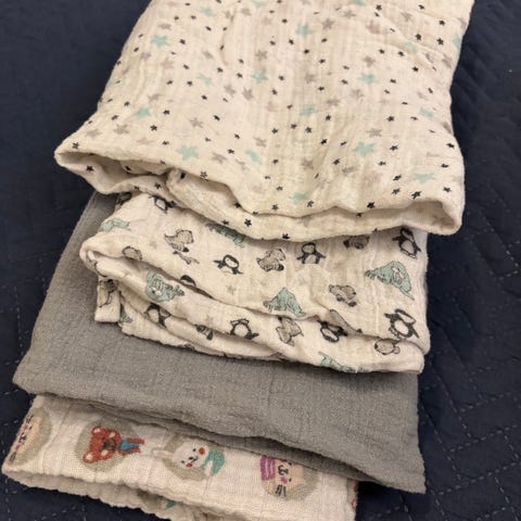 En saanut jollyroom merkkiä pois - eri merkkisiä harsoja vauvalle.