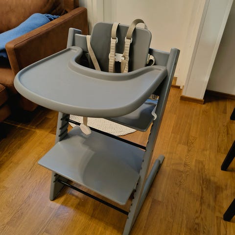 Myyntiin puunvärinen Stokken Tripp Trapp -syöttötuoli. Yleisilmeeltään siisti, mutta tuolissa näkyy käyttö ja ikä. Sisältää tuon vauvakaaren, mutta en toistaiseksi löytänyt loppuja vauvaosia.