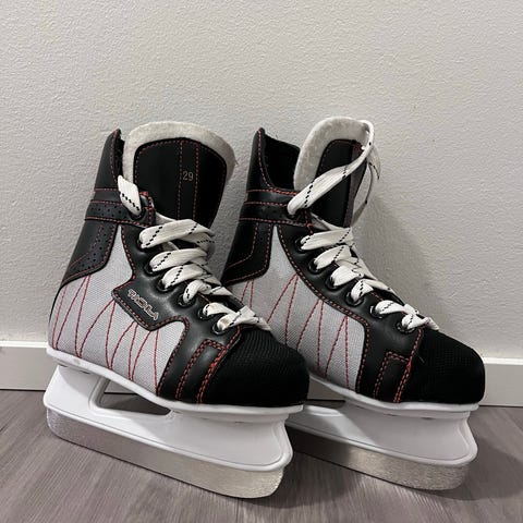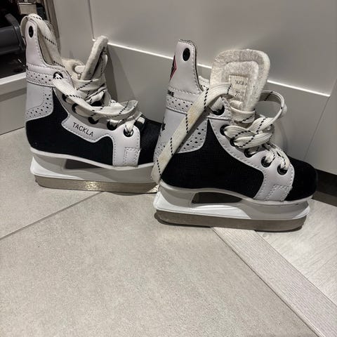 Pinnassa alkaa olla kulumia, mutta muuten ehjät. Luisteltu kerran teroituksen jälkeen.