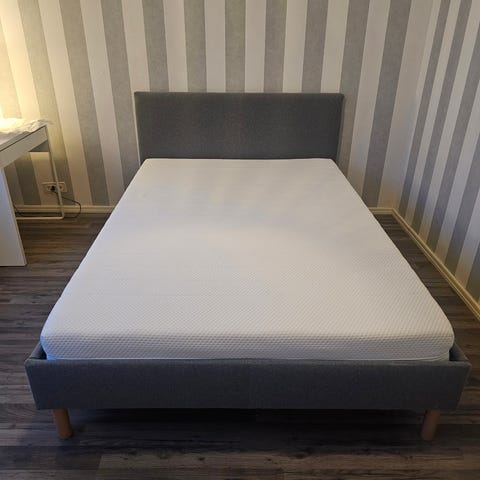 Myynnissä Ikean Neiden-sängynrunko ja Ikean Vesreröy pussijoisitettu patja.