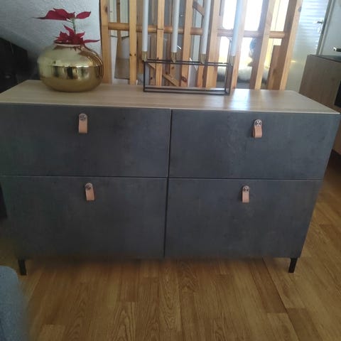 Senkki, lipasto, akaasiapuuta. Tilavat kaapit ja laatikot.