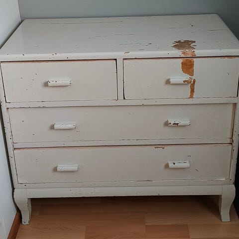 Vanha lipasto, joka koostuu kolmesta erillisestä osasta. Ollut säilytyksessä ulkovarastossa.
