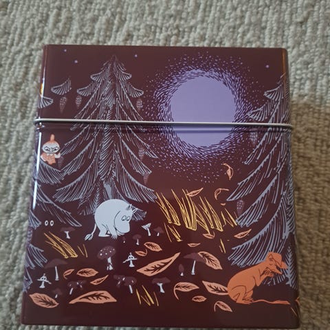 Muumi muki ei kuulu kauppaan on antamassa osviittaa lokeron koosta.