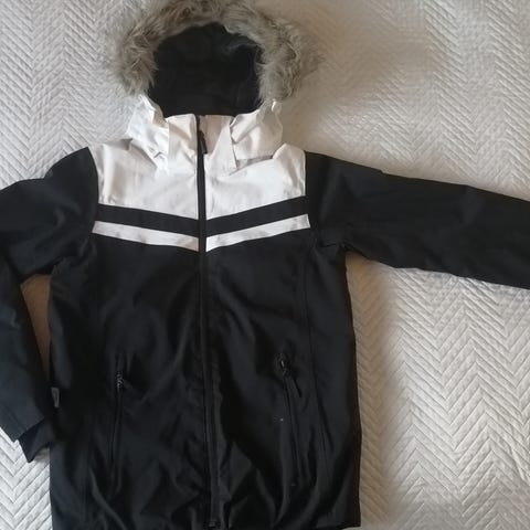 Everest muhkea talvitakki / laskettelutakki kokoa 158 cm. Irrotettava karvahuppu, myös karvareunuksen saa erikseen halutessaan pois. Vyötäröllä kiristysnauha.