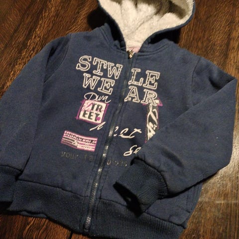 Ohut huppari taskuilla. Kokolapun olen leikannut irti, mutta meillä käytössä 122 koossa. Siisti käytetty kunto.
