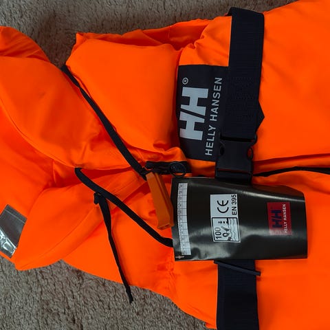 Helly Hansen Mini pelastusliivi, soveltuu lapsille, jotka painavat 3-10 kg. Väri oranssi ja keltainen ruutukuvio. Liivissä on säädettävät hihnat.