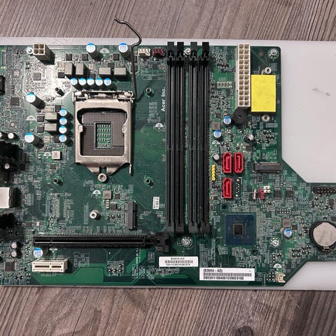 Gigabyte GA-H55M-UD2H Emolevy jossa Intel Core i3 prosessori vakiojäähdyttimellä. Suoraan käytöstä poistettuna, mutta tarkemmat tiedot prosessorista jäi katsomatta.
