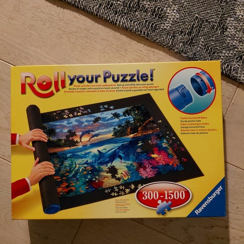 Ravensburger Puzzle Roll & Go -palapelimatto. Palapelimatto on suunniteltu helpottamaan palapelien kokoamista ja säilytystä. Matto on musta ja sen avulla voi rullata ja suojata palapelin keskeneräisenä.