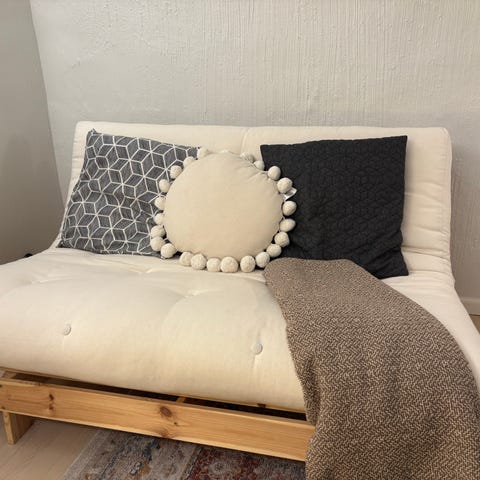 Hyväkuntoinen navy sininen nido patjaksi levittyvä "pesätuoli" esim. lastenhuoneeseen. Patjan koko 90 X 180 cm. Lisätietoa https://share.google/T4zqfYWZRuLiEM8un