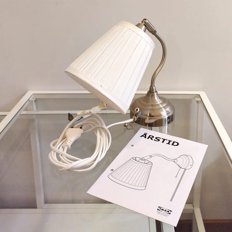 Myydään ehjä ja siisti Ikean Årstid-valaisin. Yksi pieni kolhu jalassa, siitä kuva. Käytössä olleen lampun saa mukaan.