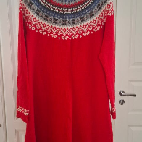 Letlopista neulottu mekko, koko n. XL. Pidetty vain pari kertaa. Pituus painalosta helmaan 83cm, kainalo-kainalo 54cm, hihan pituus kainalosta 50cm.