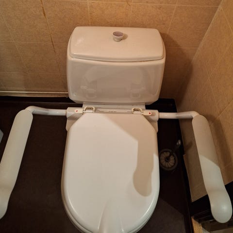 Kuin uusi,tukeva ja helposti siirrettävä tuki wc-käynteihin ja muun ylösnousun tueksi. Uuden ovh noin 120€