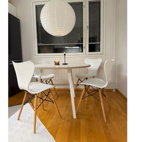 Pöydän halk 105 hinta 500€ kuin uusi, tuolit yht 100.