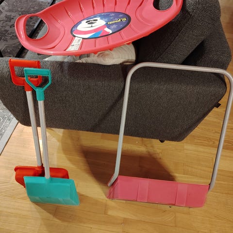 Vähän käytetty lasten mäenlaskuväline. Pieniä käytön jälkiä, mutta kunnossa on.