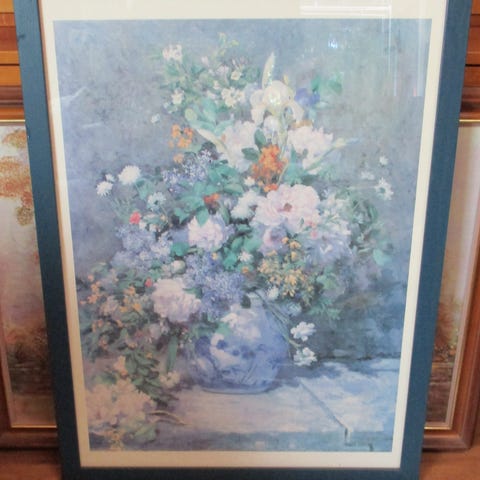 Kehyksineen koko 15 x 15 cm kukkatauluja. Kankaalle maalatut
