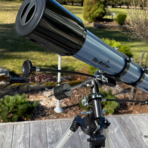 Vähän käytetty peilikaukoputki tähtien ja planeettojen tarkkailuun. Mukana käyttöohjeet, tähtikartta -cd, 2x Barlow, ja linssit (H20mm, H12,5mm, H6mm, SR4mm).