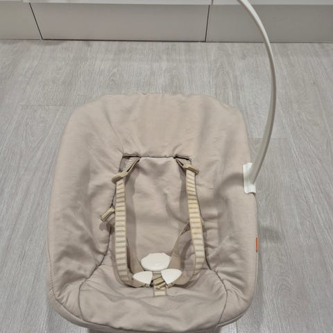Myydään Stokken Tripp Trapp-tuoliin sopiva newborn set. Väri harmaa. Ei tahroja, ehjä, pientä nukkaantumista kankaassa. Lelukaari mukana. Eläimetön talous. Vain nouto/sopimuksen mukaan voin tuoda lähialueelle. En postita.
