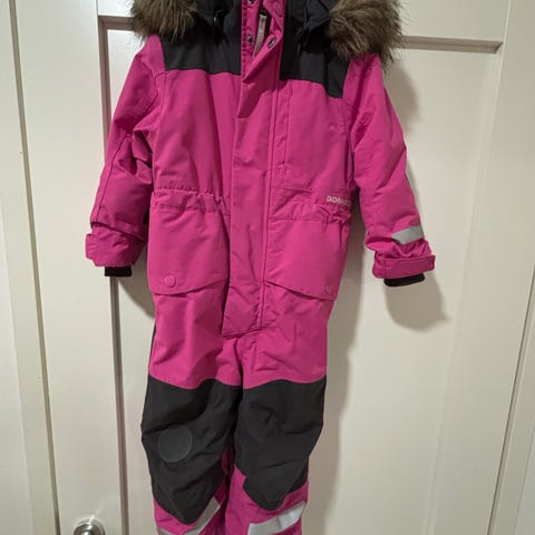 Tummansininen didriksons toppahaalari koossa 90. Extended size - ominaisuus, joten hihoja ja lahkeita saa halutessaan hieman pidennettyä ja käyttöikää jatkettua. Emme käyttäneet itse tätä ominaisuutta, joten saumat avaamatta.