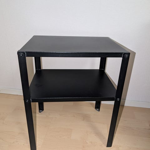 Siisti, näppärä sivupöytä/yöpöytä. Jalat ovat irroitettavat. Yhdessä jalassa on pieni kuluma, joka tullut muuton yhteydessä. Vain haku. Haku viimeistään 28.1.2026.