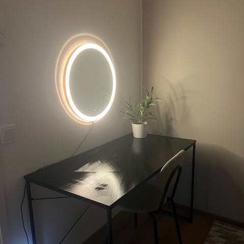 Eilen Jyskistä ostettu Vandborg-työpöytä. Ei löytänytkään meiltä paikkaa (purettuna eli menee autossa pienempään tilaan)