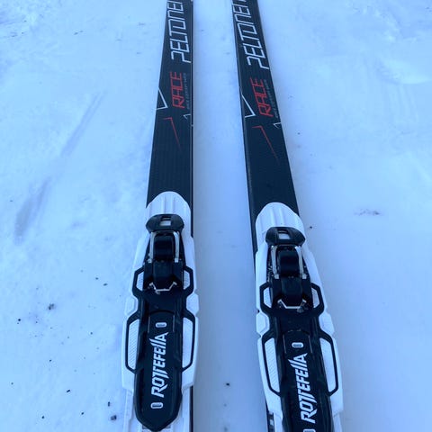 4 kertaa hiihdetyt Peltonen Supra C luistelusukset (painoluokka 80-90 kg) Rottefella Skate siteillä.