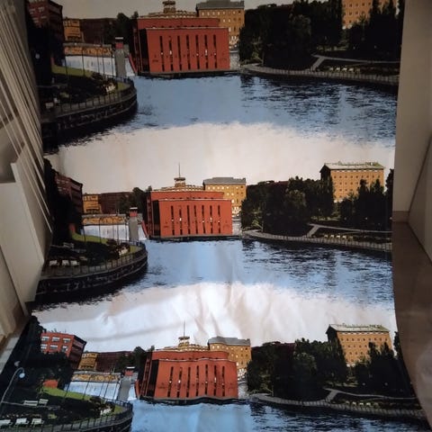 Verhoista yli jäänyt kangaspala. Tästä saa tehtyä vaikka kangastaulun. Kangas Vallilan Kallvik, suunnittelu Riina Kuikka 2013.