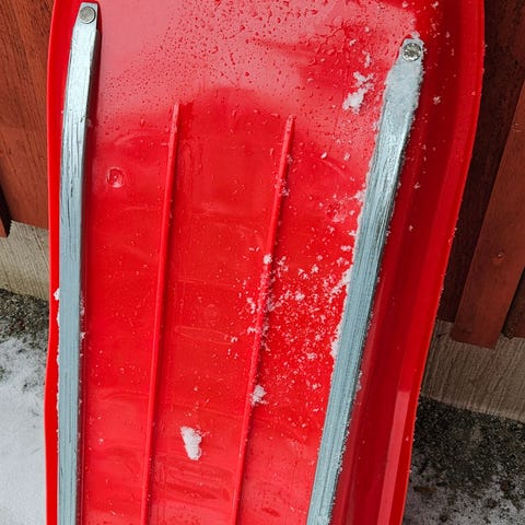 Uutena ostetut, paljon käytetyt... Vielä ehjät, paitsi sinisen pulkan metallisuojat takaa irti. Näppärä korjaa.