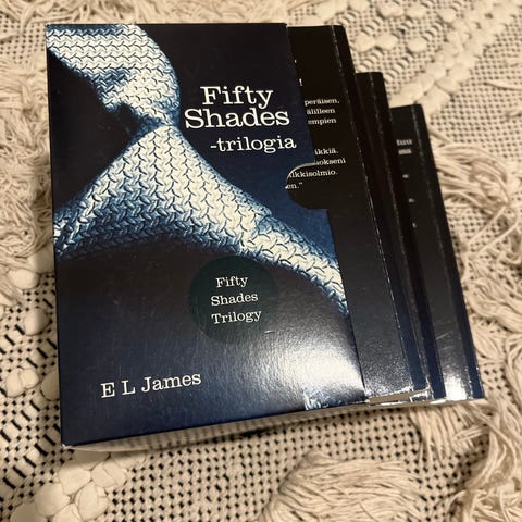 Kyseessä on suomennettu pokkari -trilogia, joka sisältää tunnetuksi tulleen romanttisen/Twilight -FanFic, Fifty shades -kirjat