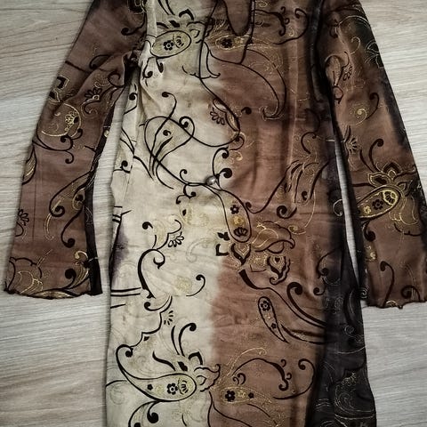 Annetaan M-kokoinen pitkä Kati Traa -merkkinen kevyttoppatakki. Vaatii uuden vetoketjun.
