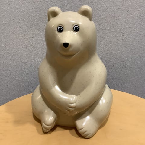 Tämä on Nordea-pankin (aiemmin Merita-pankin) mainoslahjana käyttämä kermanvärinen jääkarhuaiheinen säästölipas.
