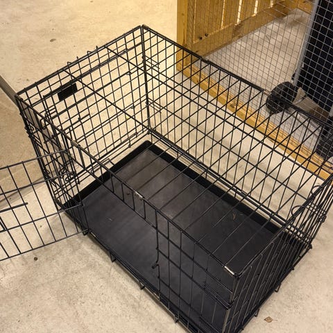 Metallinen koirankuljetushäkki. Väri musta. Häkissä on kaksi ovea ja se on suunniteltu lemmikkieläinten turvalliseen kuljetukseen. Ollut meillä muutaman vuoden ja käytetty neljä kertaa. Eli ihan uudenveroinen häkki.