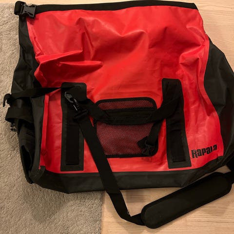 Iso kalastuslaukku. Päätaskuun mahtuu neljä ohutta 3700-koon rasiaa tai kaksi syvää. Sivu- ja etutaskuissa tilaa tarvikkeille. Kannen alla oleva ylätasku on lämpöeristetty kevyesti.