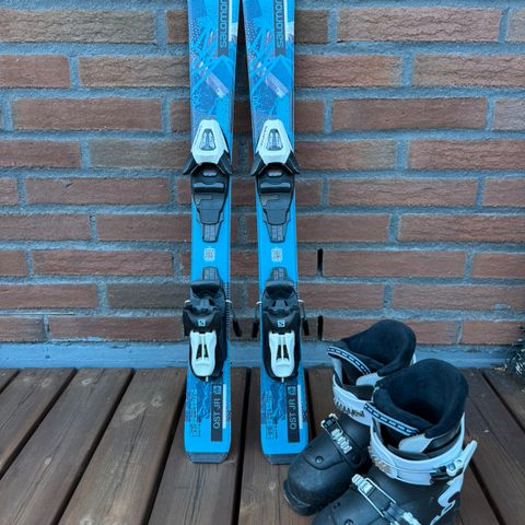 Hyvässä kunnossa 90cm Nordica sukset ja Salomon monot. Monojen koko tarra kulunut pois, mutta käyttäjä ollut 4-5 vuotias n. 30 koon jalalla viime talvi.