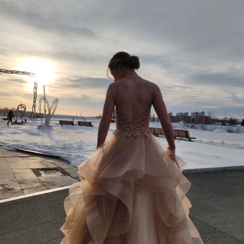 Juhlamekko esim. Vanhojen tansseihin. Kuin uusi, kerran käytetty vanhojen tansseissa. Vuorellinen. Helmassa alushame.