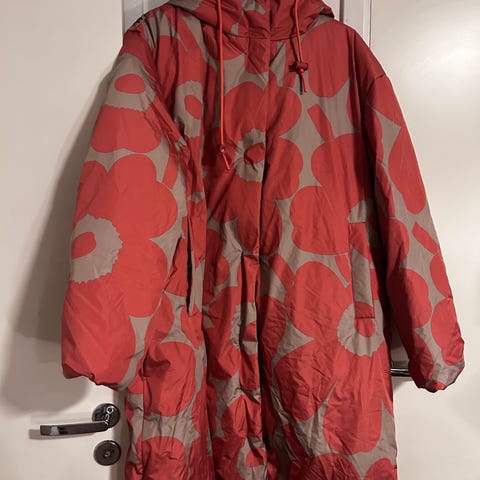 Pari talvea kovemmilla pakkasilla pidetty upea Marimekko Jarla takki kokoa S. Reilu koko, menee hyvin reilussa M koossa. Pesetetty pesulassa käytön päätteeksi, kunto on oikein siisti ja takki on todella lämmin, ilmava ja muhkea. Sivuilla piilovetoketjut.